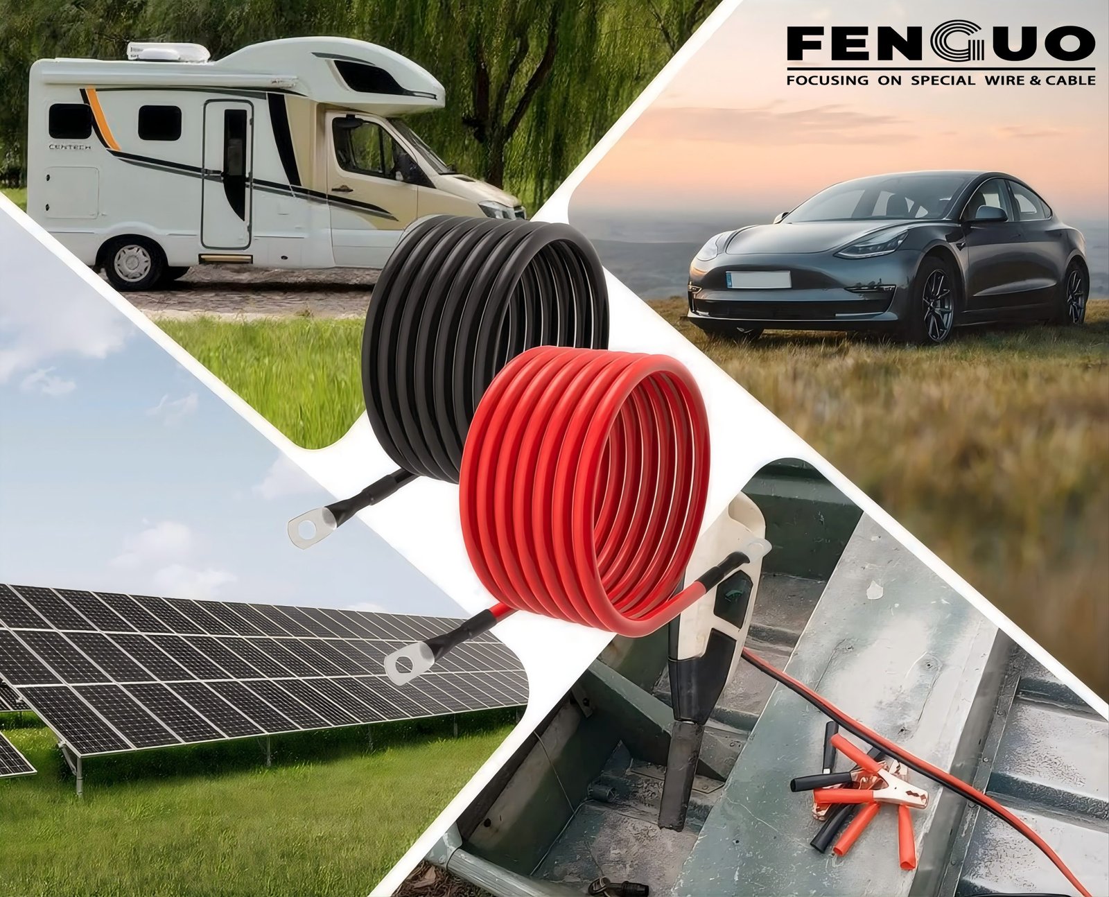• OXYGEN-FREE COPPER (OFC) – Crafted from oxygen-free copper, these RV battery cables offer unparalleled electrical conductivity compared to aluminum. They maintain stability under heat and carry a higher current load for enhanced efficiency.